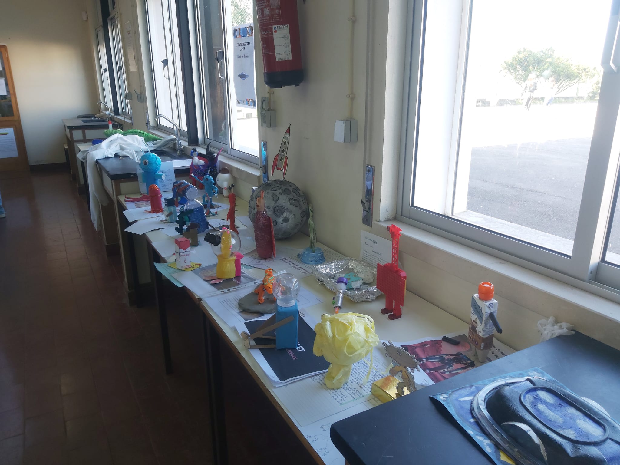 ● Durante a passagem pelo laboratório os alunos também puderam apreciar as exposições: os “Extraterrestres ESAOF” e “ Do lixo se faz música”.